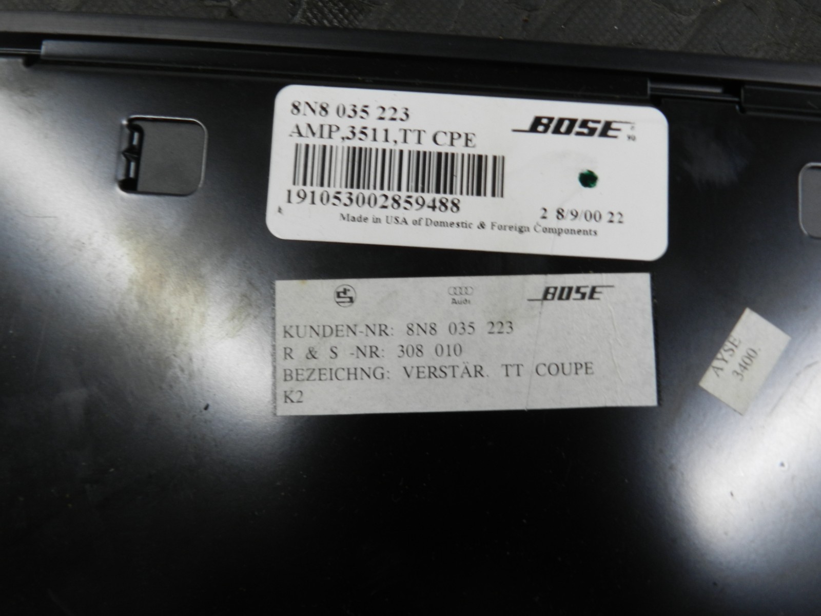 (160) 2000 AUDI TT QUATTRO 8N. BOSE AMP AMPLIFIER 8N8035223